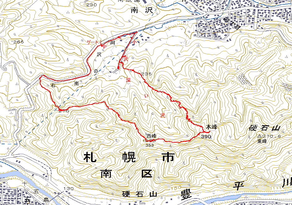 ポイント 低山でも倒木地帯があり、藪ありで侮れない。景色は木立越しになるので、期待は出来ないが藻岩山は良く見えるところがある。東峰は立入禁止になった。 |