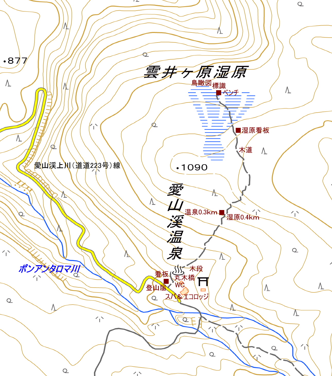 アクセス 旭川から層雲峡に向かって39号線を走り、安足間を過ぎて、正面にコンビニ、右にドライブインが見えると、愛山渓の道標がある。橋の手前の舗装道路を右に曲がる。この道路は所々未舗装で細いところもあり、入浴客も来るので注意。 国土地理院地図 Google Map 登山道地図クリック大→| |