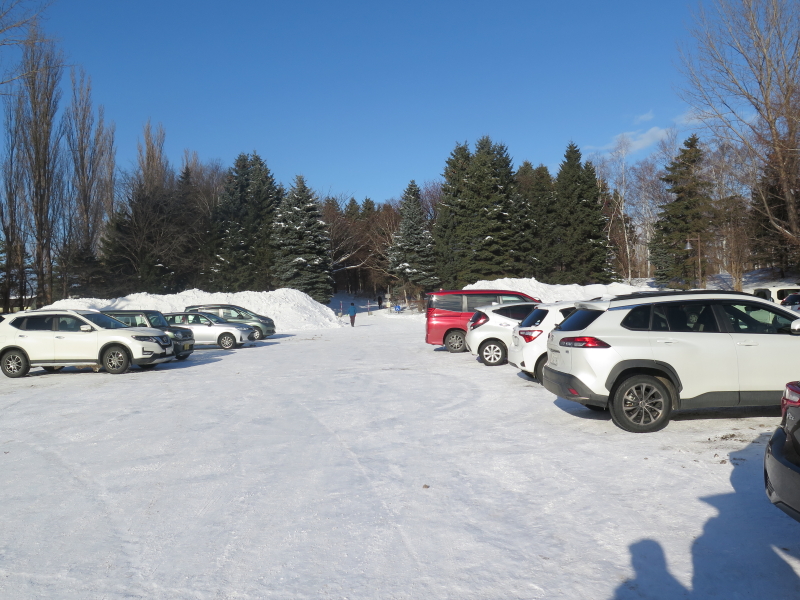 アクセス 冬期は新川側駐車場が開いているので停める(除雪は1月5日頃から)。南駐車場は土日祝祭日が開放されているようだ。公園内には、年明けから歩道や歩くスキーコース、雪上パークゴルフ、スノーモビルが開放されている。歩くスキーコースは反時計回りになっている。前田森林公園HP |