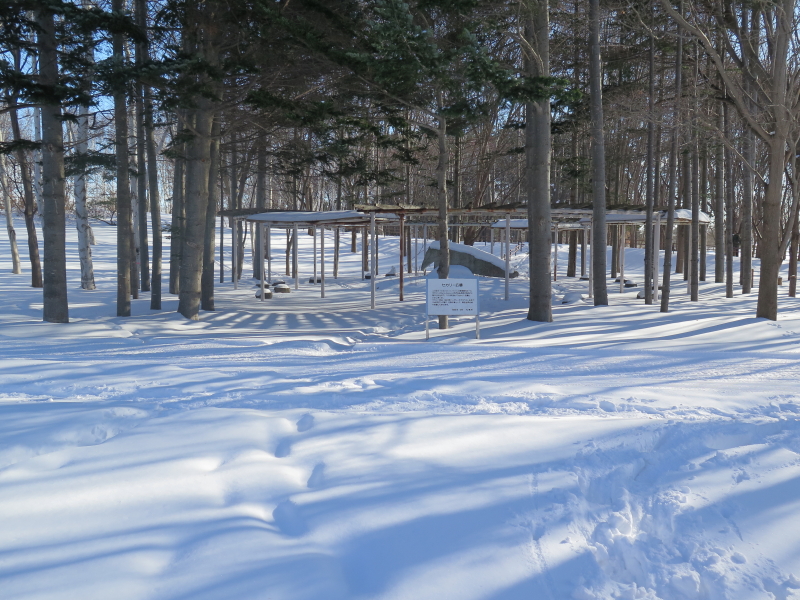 | 案内板 | 白樺並木 | 芝生広場 | 圧雪された道 |