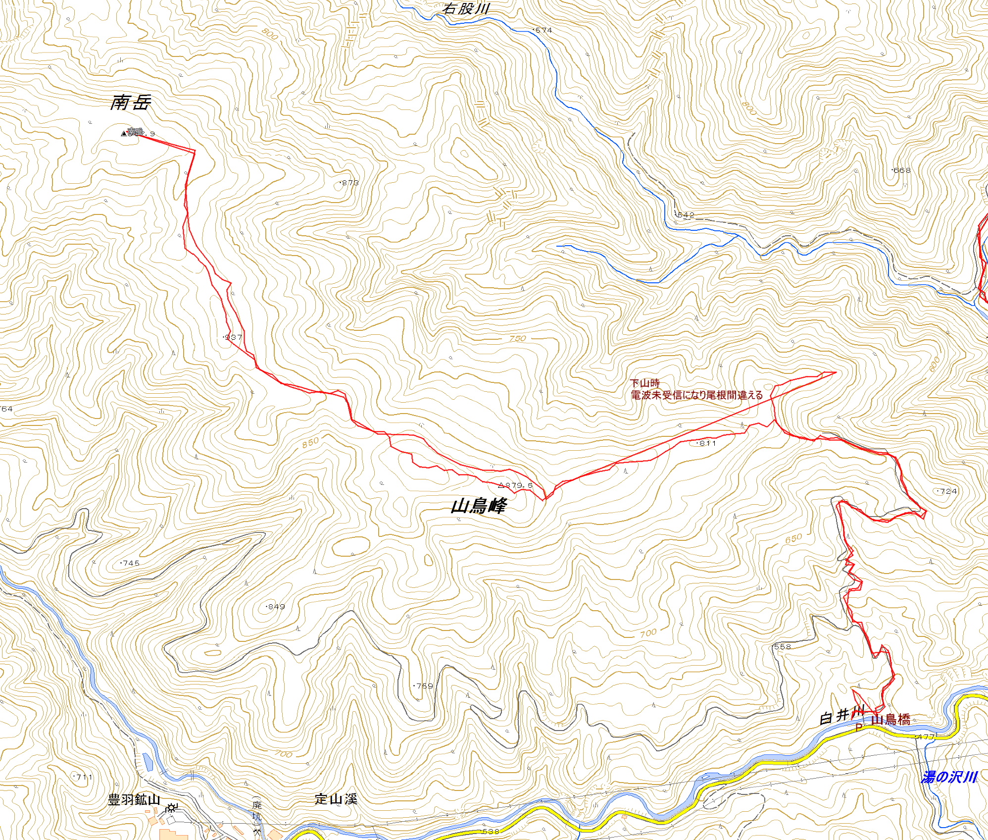 | 南岳(982.9m)山鳥峰(三角点:879.5m) |