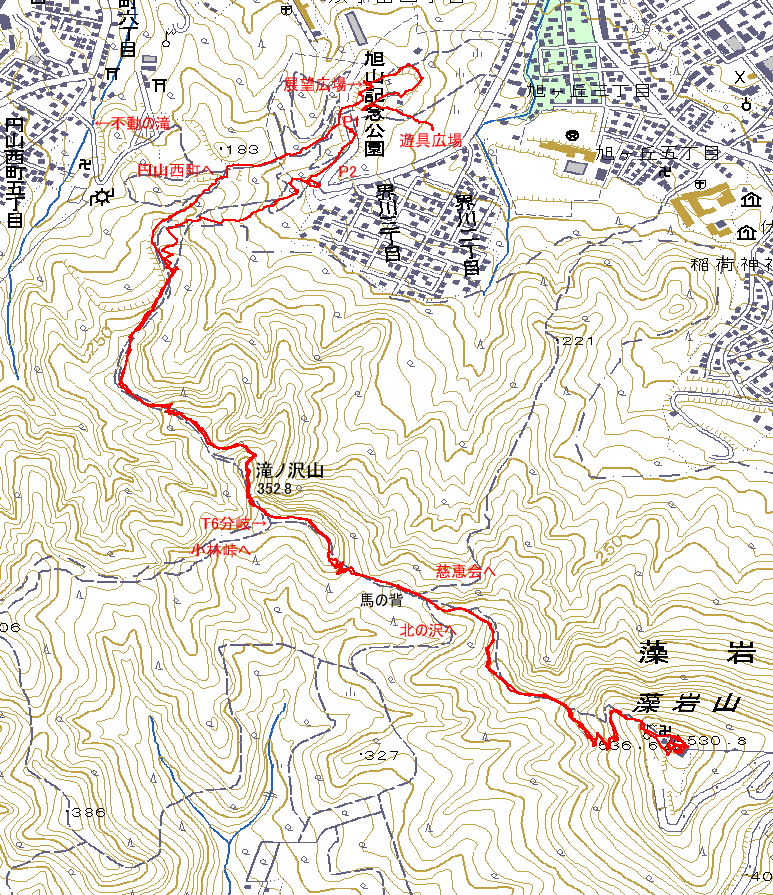 | T6分岐 | 藻岩山 | 馬の背の分岐 | 三角点 |
