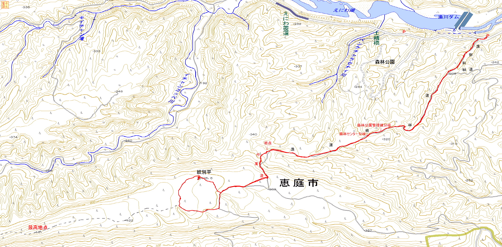 | 広い林道 | 管理棟分岐 | 森林センター分岐 | 作業道へ |