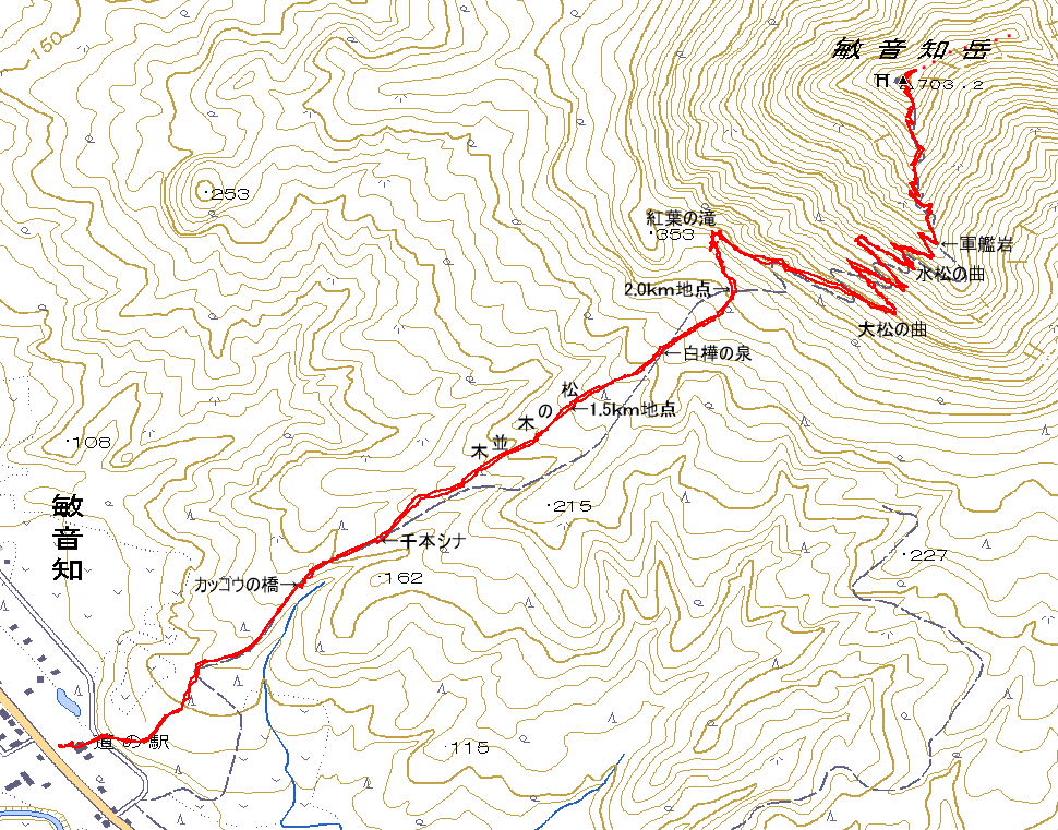二人の登山記録(遊びの時間も含む) 2010(H22)年8月18日(水) 晴れ 往復8.497km 登り1:56 下り1:15 8:40登山口→8:53カッコウ橋→8:57千本シナ→9:10松の木並木→9:12/1.5km地点→9:18白樺の泉→9:26/2km→9:35紅葉の滝→9:46大松の曲→10:01水松の曲→10:10軍艦岩→10:36頂上10:51→11:05軍艦岩→11:14水松の曲→11:21大松の曲→11:30紅葉の滝→11:33/2km→11:38白樺の泉→11:44/1.5km→11:46松の木並木→11:54千本シナ→11:56カッコウ橋→12:06登山口 2001(H13)年7月14日(土) 曇り、ガス 登り1:46 下り1:30 9:53登山口→10:11/1km地点→10:21/1.5km地点→10:34/2km→10:50/2.5km→11:16軍艦岩→11:39頂上12:17→13:13/2km→13:22/1.5km→13:29/1km→13:47登山口 |