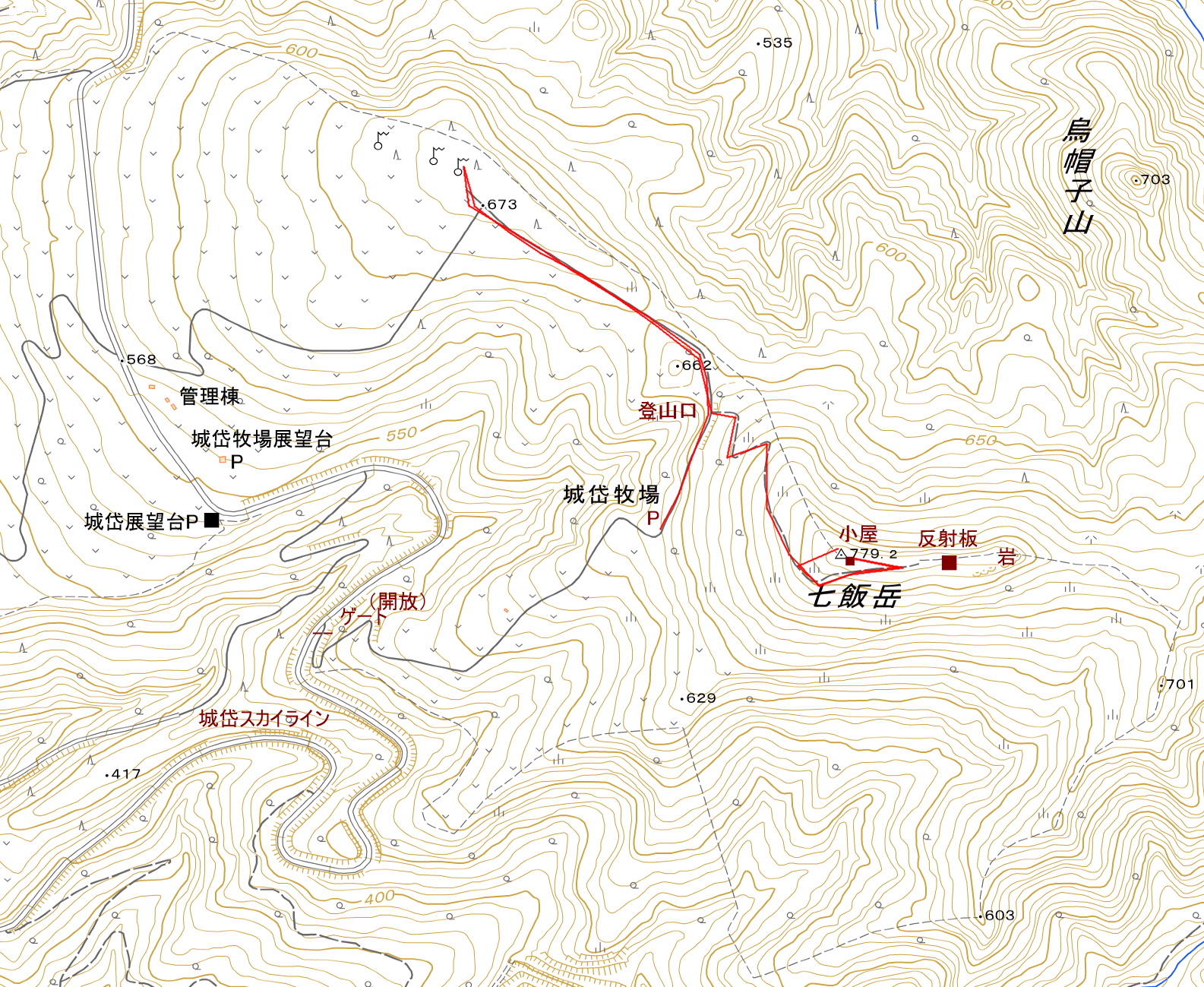 | 七飯岳(779.2m)673m峰 |
