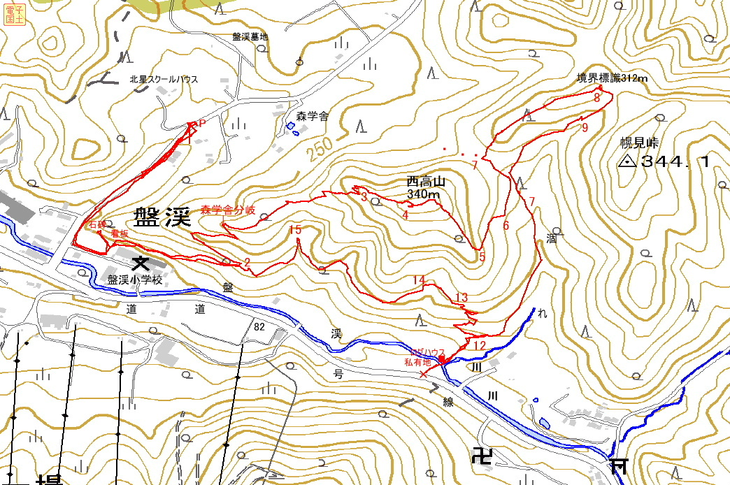 アクセス 道道82号線沿いの盤渓小学校の校庭の裏に案内板が立っている登山口がある。周辺には駐車するスペースは無いが、「北星学園のスミス記念北星スクールハウス」の取り付き道路前に駐車スペースを見つけて駐車させていただく。 国土地理院地図 Google マップ 登山道地図(2018.9.12)クリック大→┃ |