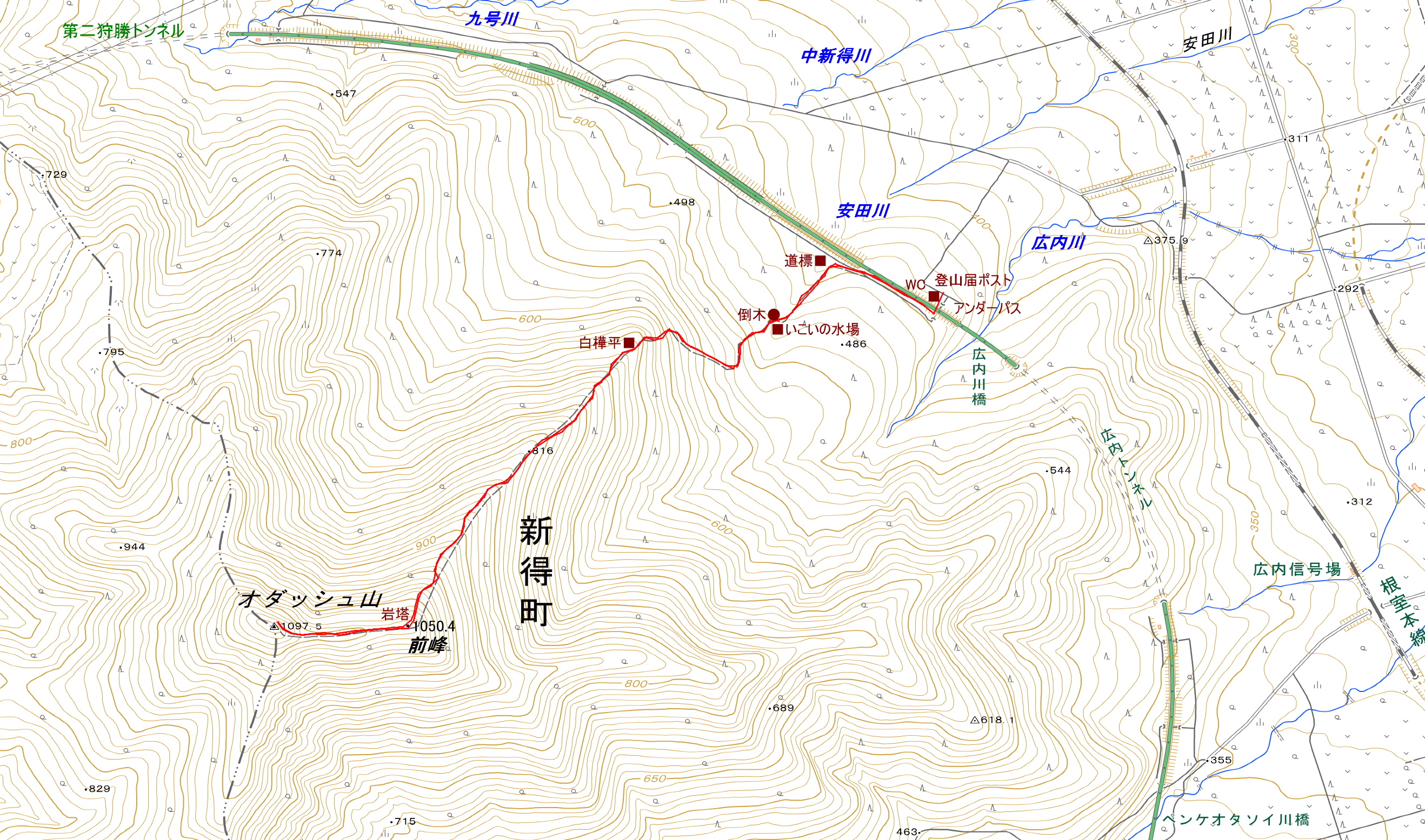 アクセス 新得町にある農林水産省の畜産試験場にめがけて行き、正面玄関を左に見て、山に向かって行くと、砂利道になり、JRの陸橋がある。これをくぐり、高速道路に突き当たったら左に行くと登山口がある。 国土地理院地図 Google Map 登山道地図クリック大→| |