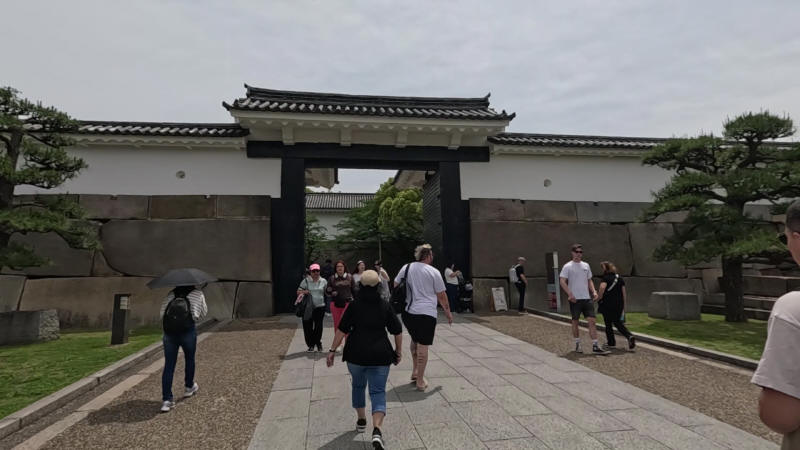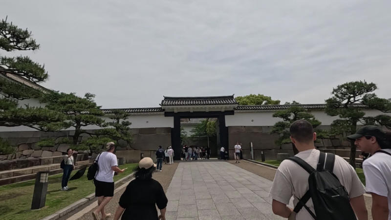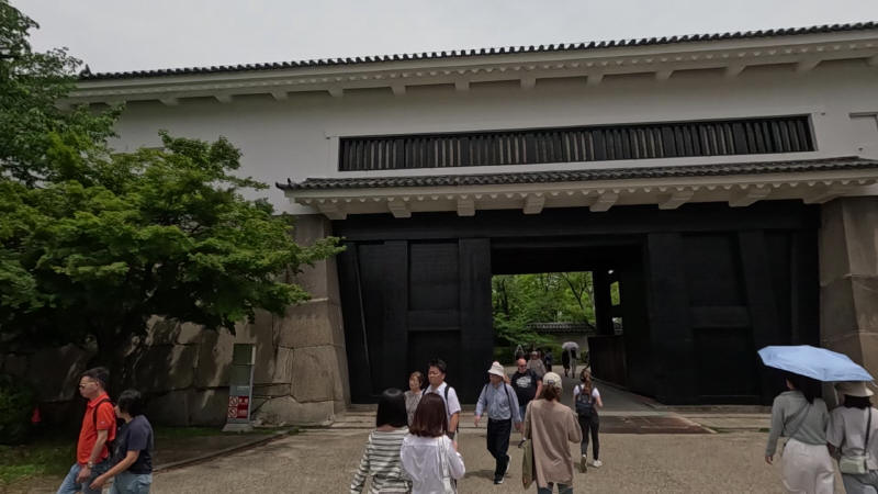 | 内堀沿いの道は広くエレクトリックカーが走っていた。桜田門に向かうと、門を額縁にして天守閣が見えていた。中に入ると桜門枡形の巨石が目の前に広がってくる。 |