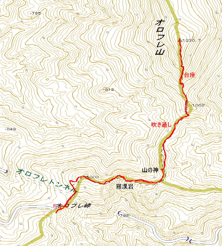 アクセス 道道2号線を壮瞥町側から登って行くと、旧道が右に分かれオロフレ峠展望台に行く道があり、その終点に登山口がある。 |