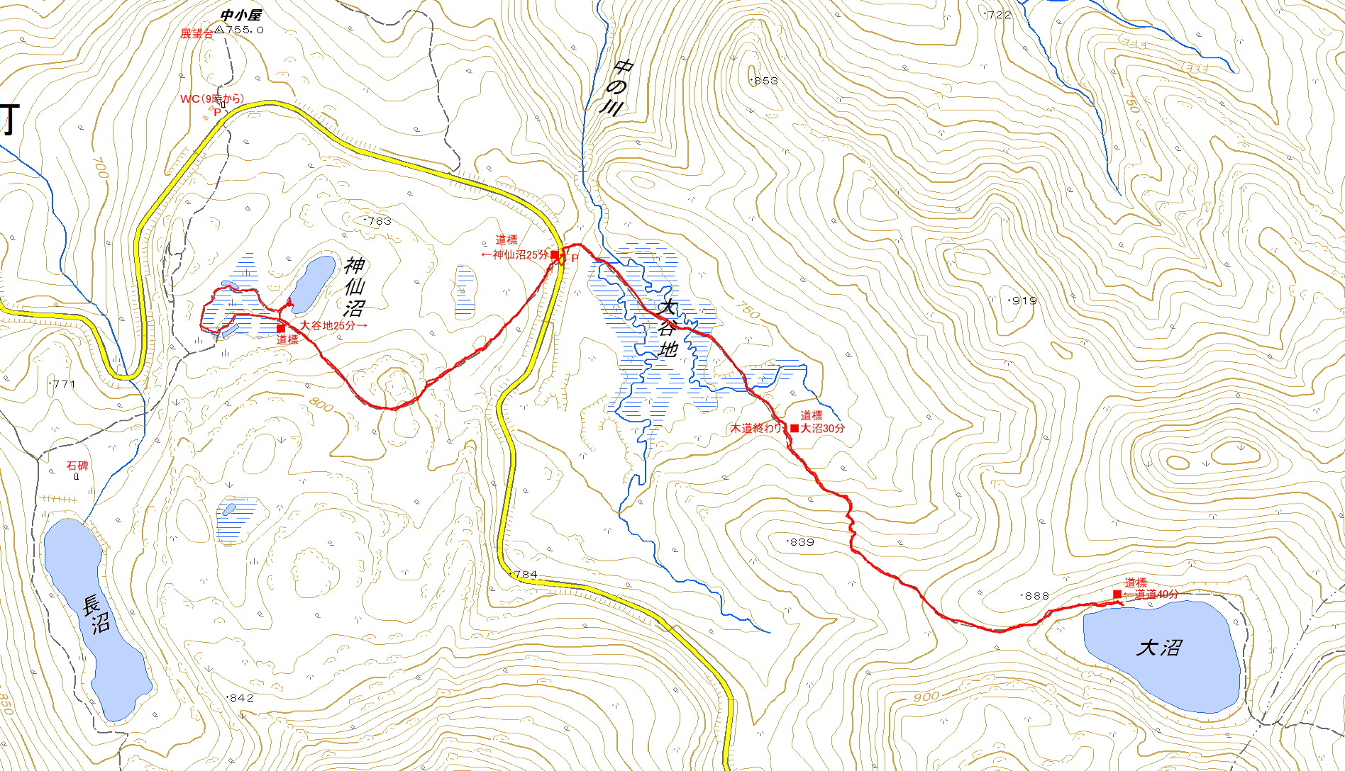 | 中の川 | ニッコウキスゲ | 大沼30分 | 大沼 |