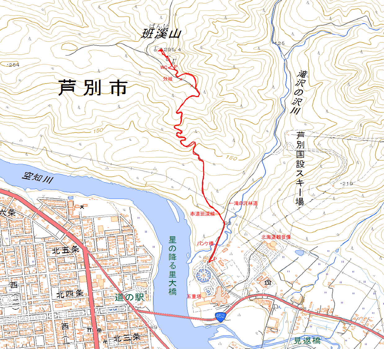 アクセス 国設芦別スキー場を目指す。その前に駐車場がある。三角点名は辺渓山(penkeyama)。 国土地理院地図 Google Map 登山道地図クリック大→| |
