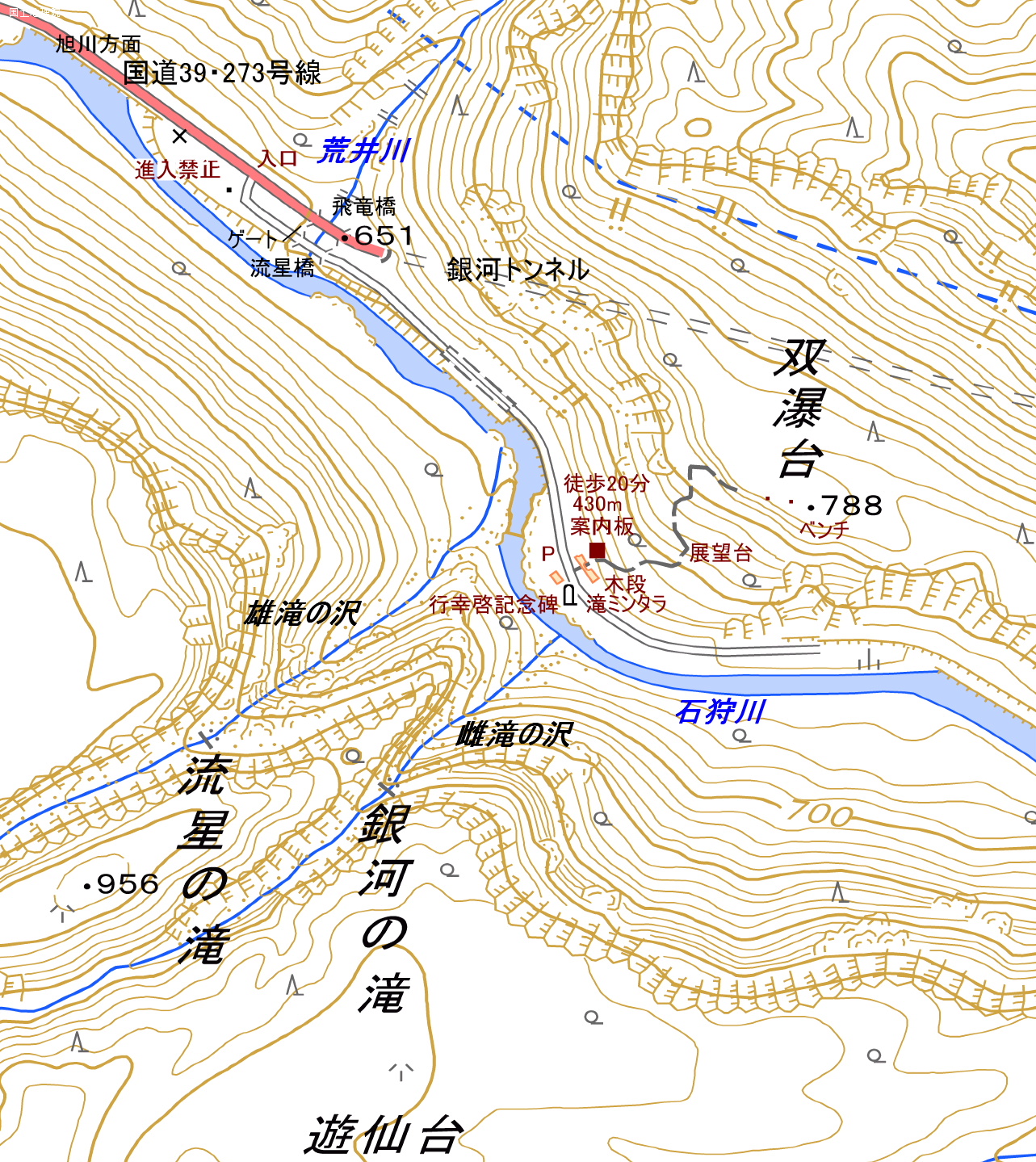 アクセス 層雲峡温泉から石狩川沿いの国道39号線を石北峠方向に辿る。 国土地理院地図 Google マップ 登山道地図クリック大→| |