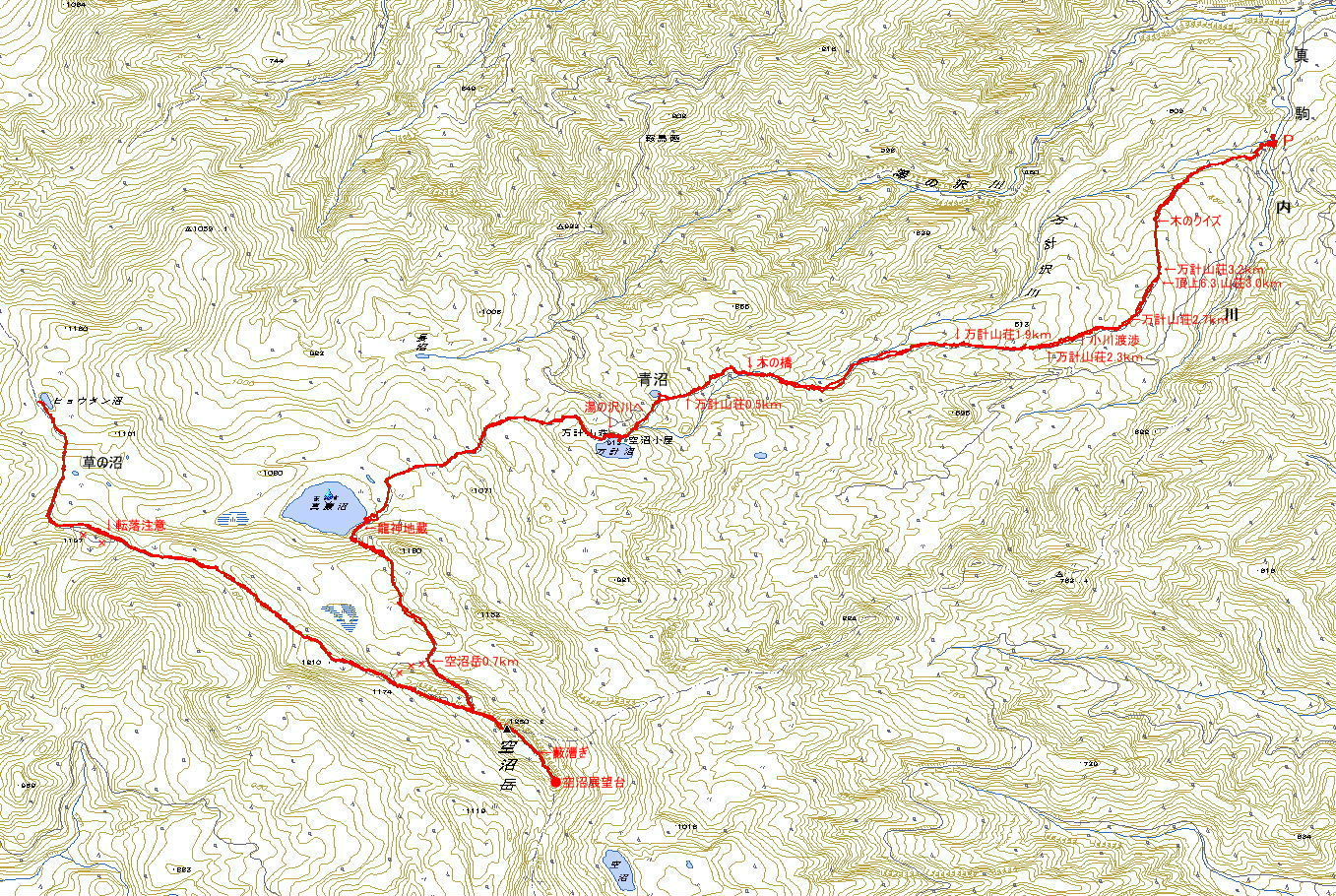 | 万計沢川の源頭 | 万計沼の入口 | 空沼小屋 | 万計沼 |