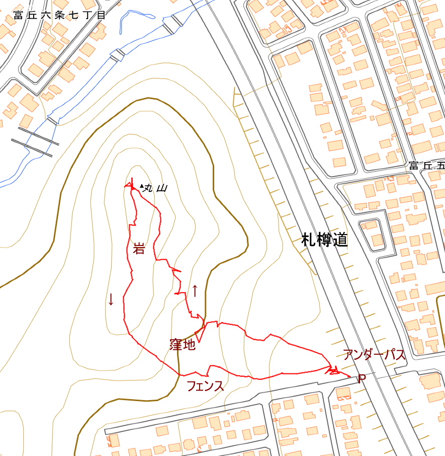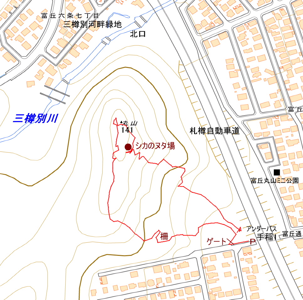 アクセス 国道5号線沿いに札幌トヨタとローソンのある十字路から山側の富丘通を上って行き、札樽自動車道のアンダーパスを越えると登り口がある。 国土地理院地図 Google マップ |