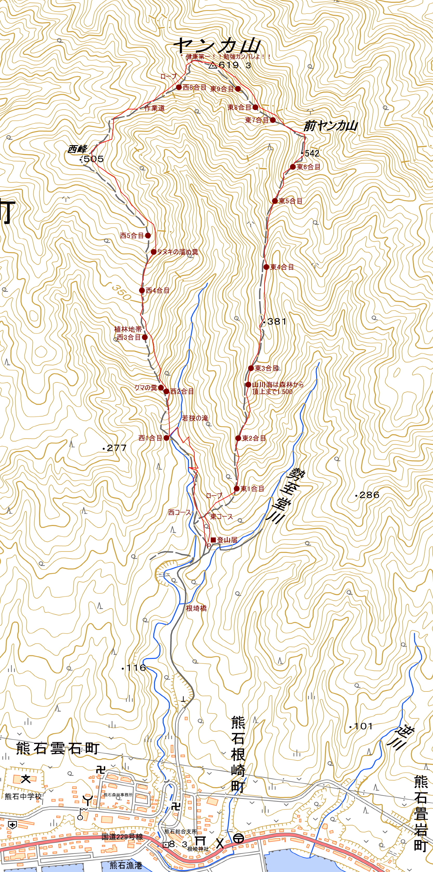 | ヤンカ山(619.3m)前ヤンカ山(542m)西峰(505m) |