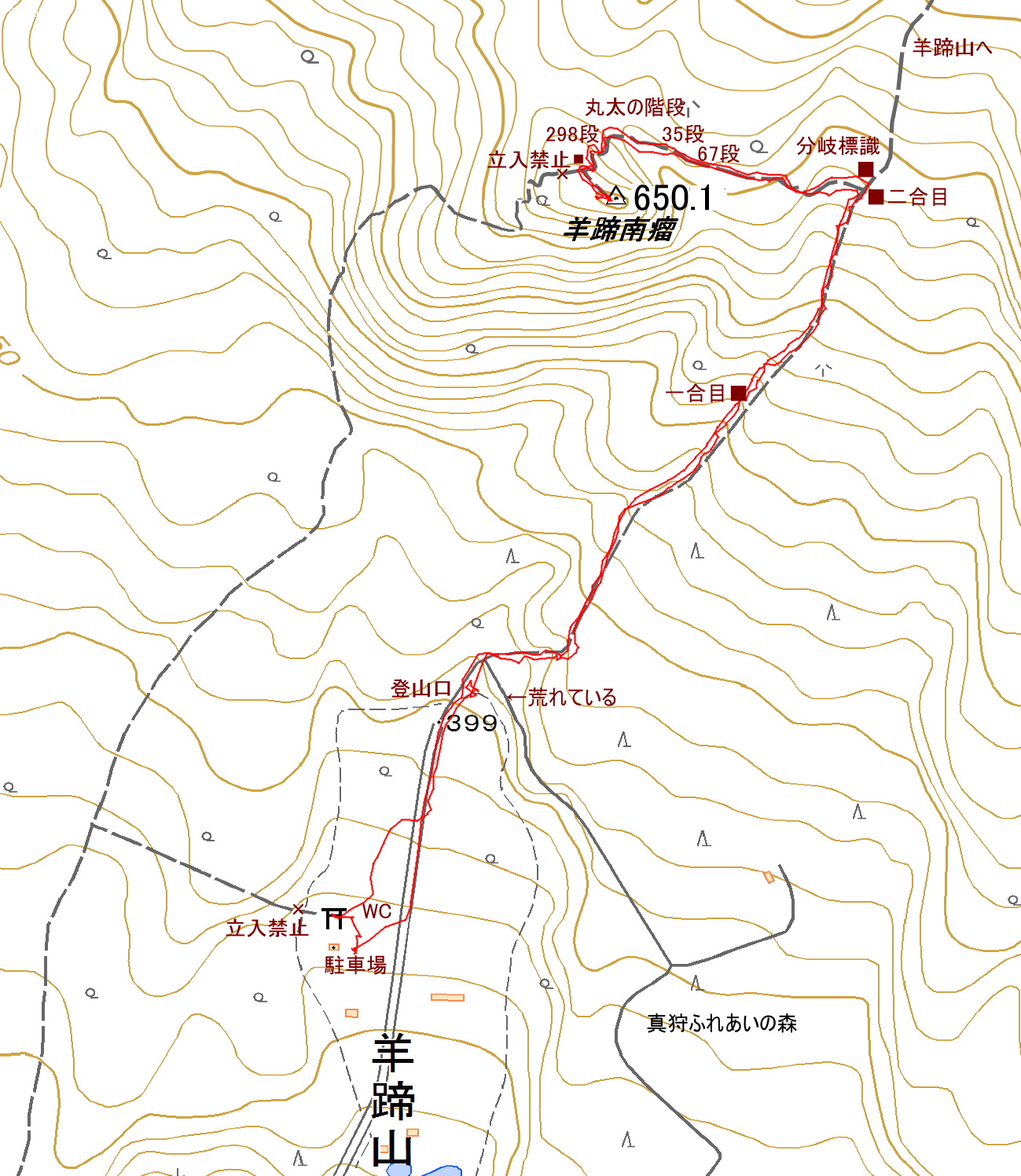 ポイント 晴れていれば展望が期待できる。三角点は南瘤。一周コースは西側が立入禁止になった。 |